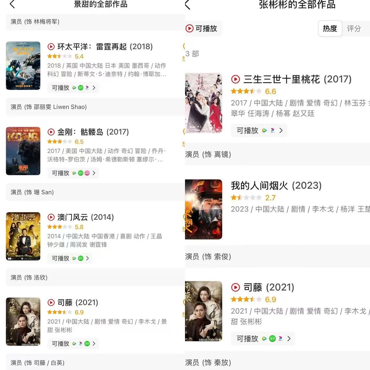 这几年,景甜和张彬彬都拍了不少戏,但对人气和咖位提升有限,称得上有效播出的剧集并不多。