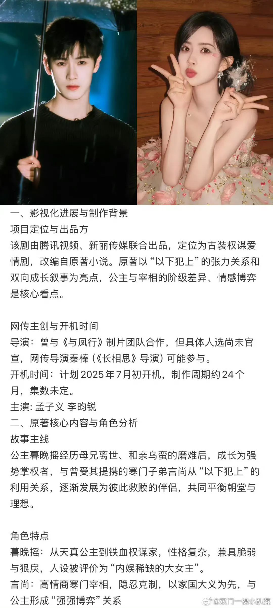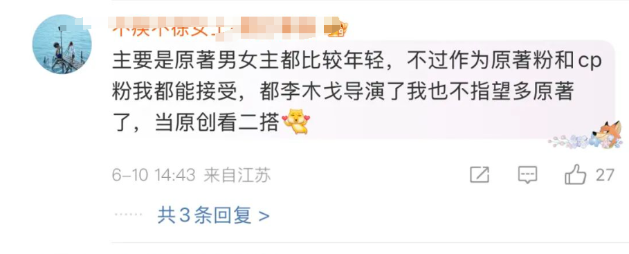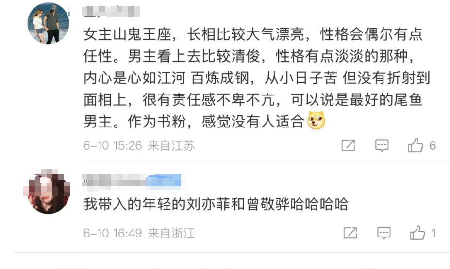这对CP二搭唯一让人比较担心的是,如果按原著,男女主可能在年龄上不合适,一些书粉提到了不贴原著。