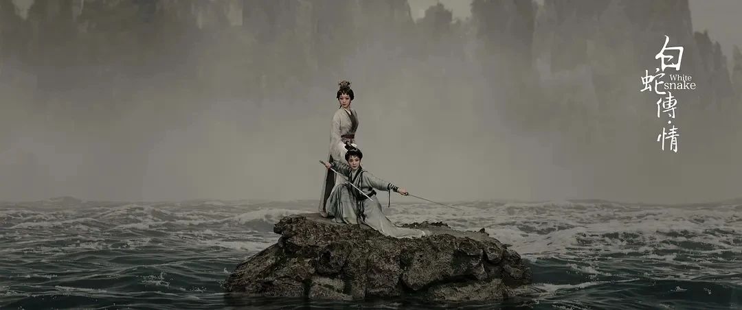 2021年,当《白蛇传·情》上映时,粤剧电影重新出现在大众视野里。水墨画特效,赋予了传统粤剧所没有的天马行空的视觉效果。更为多角度的镜头捕捉,也给了传统粤剧更为动感的韵律。