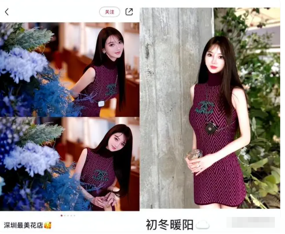 后来Luna又被扒出和女性朋友在同一地点拍摄了类似的图片,在社交网络上发布时,她们还使用了类似的文案,被怀疑是批量打造名媛人设。