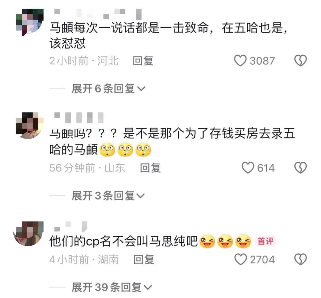 除了歌迷,有不少观众是因为综艺认识马頔,马頔在“五哈”说过要上综艺攒钱买房。