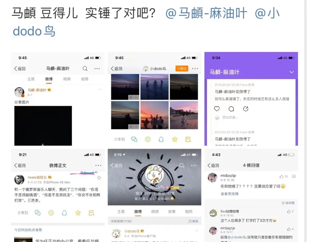 之前,有网友觉得马頔和豆得儿的互动有点暧昧,猜测他俩在一起,马頔还在评论区否认。