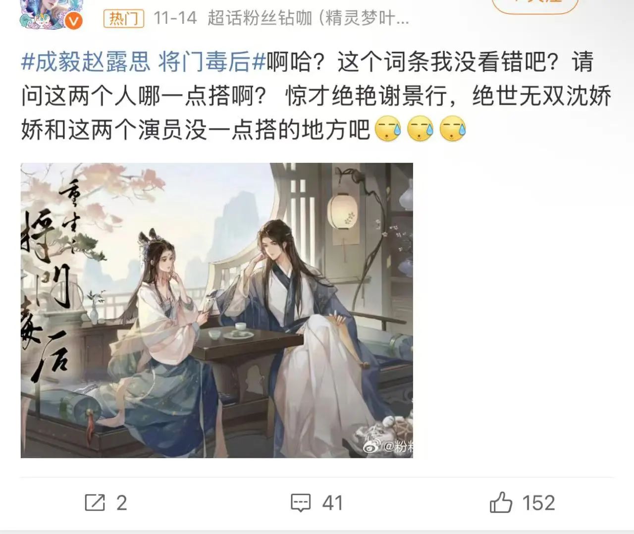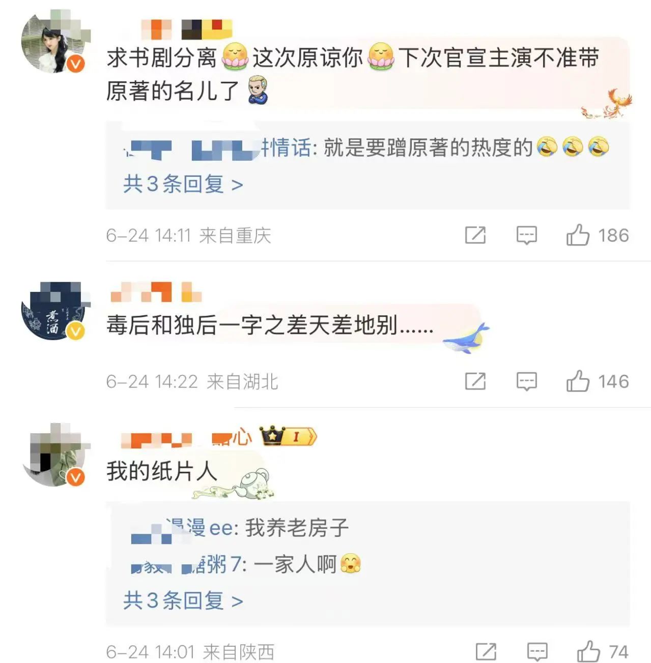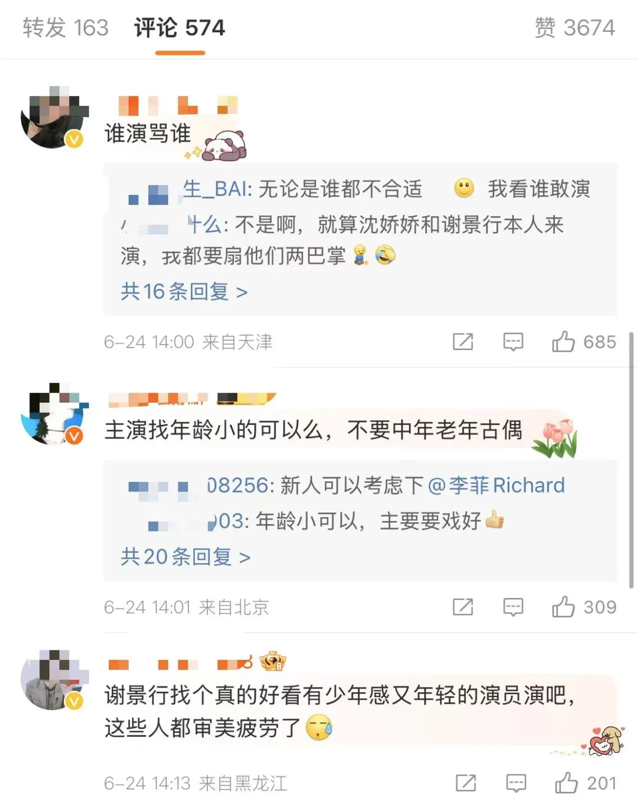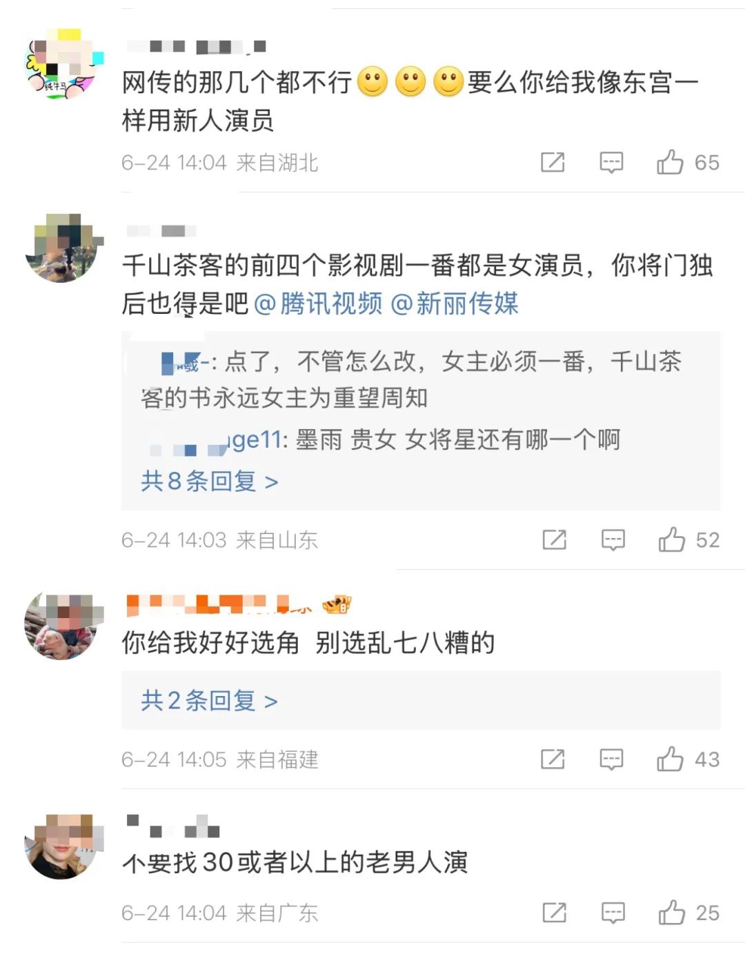评论区的网友纷纷留言提意见,有网友觉得“谁演谁骂”、“不要中老年古偶”。