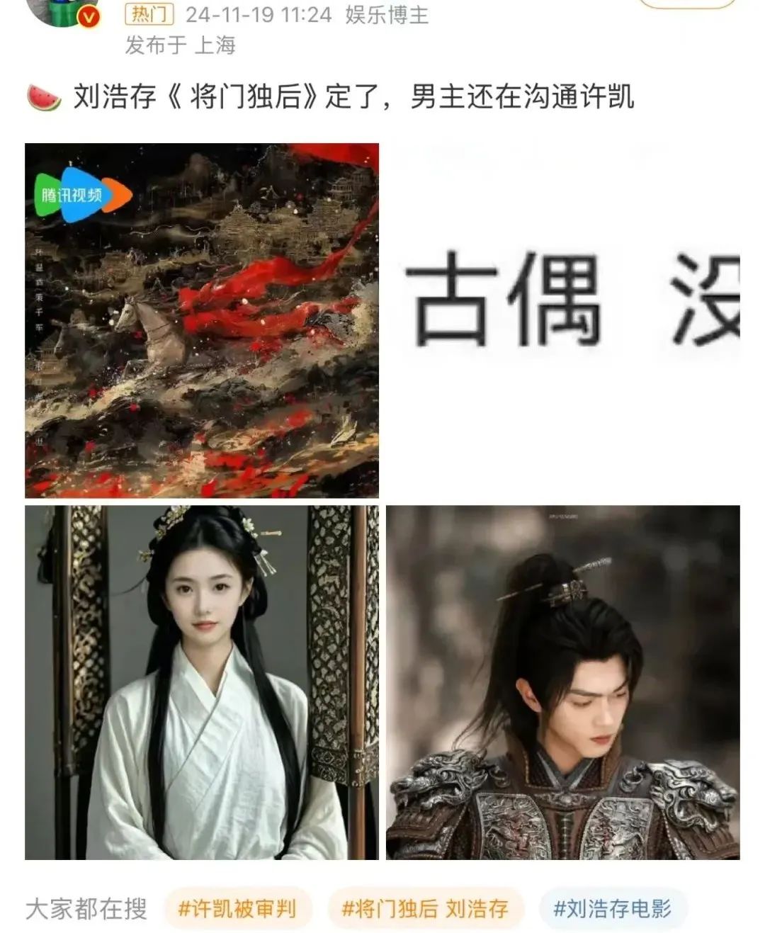 今天,网传刘浩存将出演《将门独后》,男主还在沟通许凯,这个消息冲上热搜,引发热议。