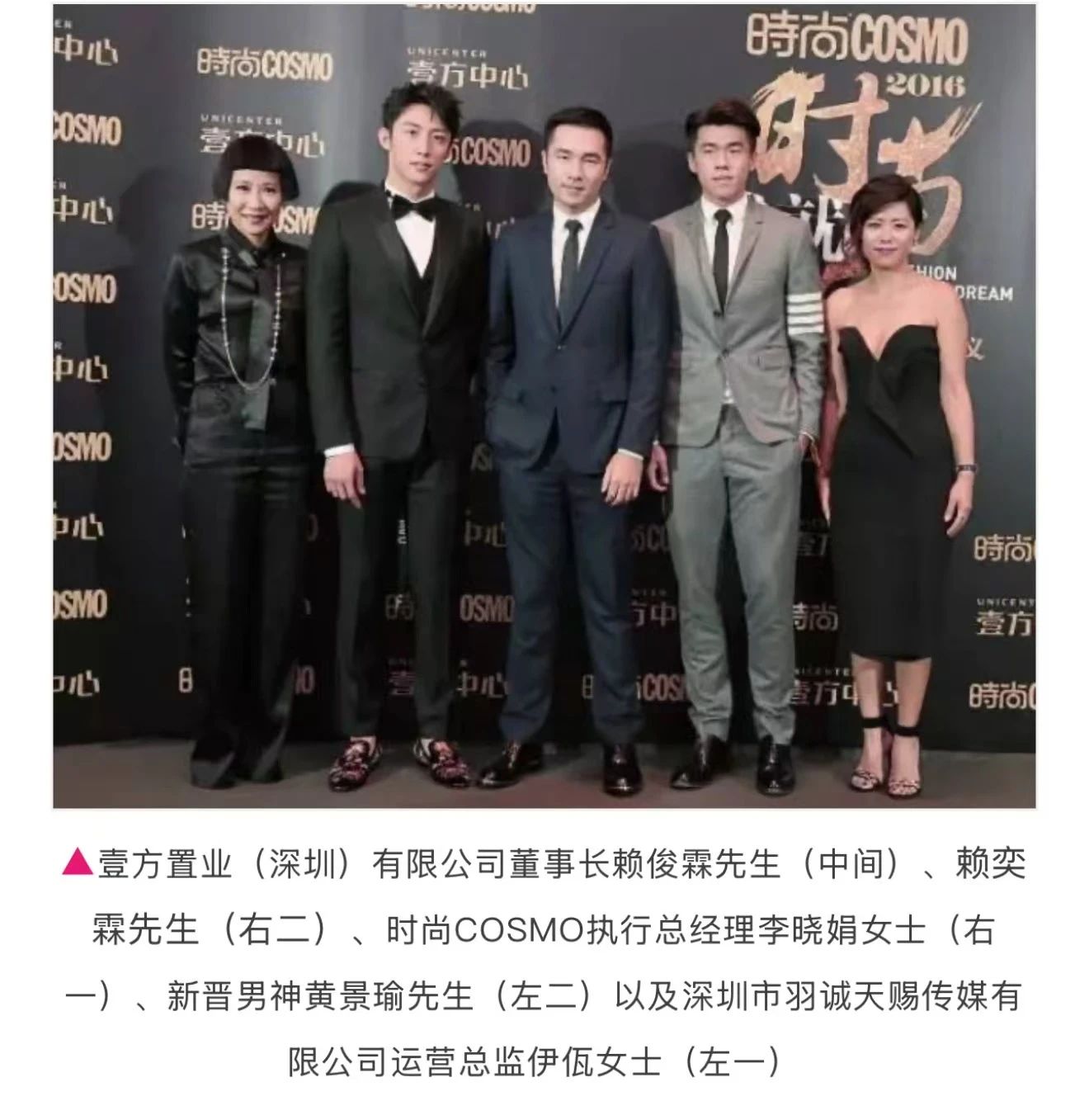 2016年时尚cosmo盛典,唐嫣和赖俊霖先生合影,时尚cosmo发文感谢壹方中心的大力支持。