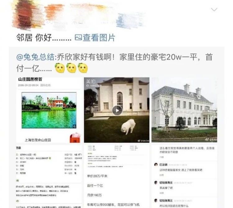 后来乔欣邻居转发了夸乔欣家有钱的微博,帮乔欣澄清了炒作吹嘘家庭条件的传闻。