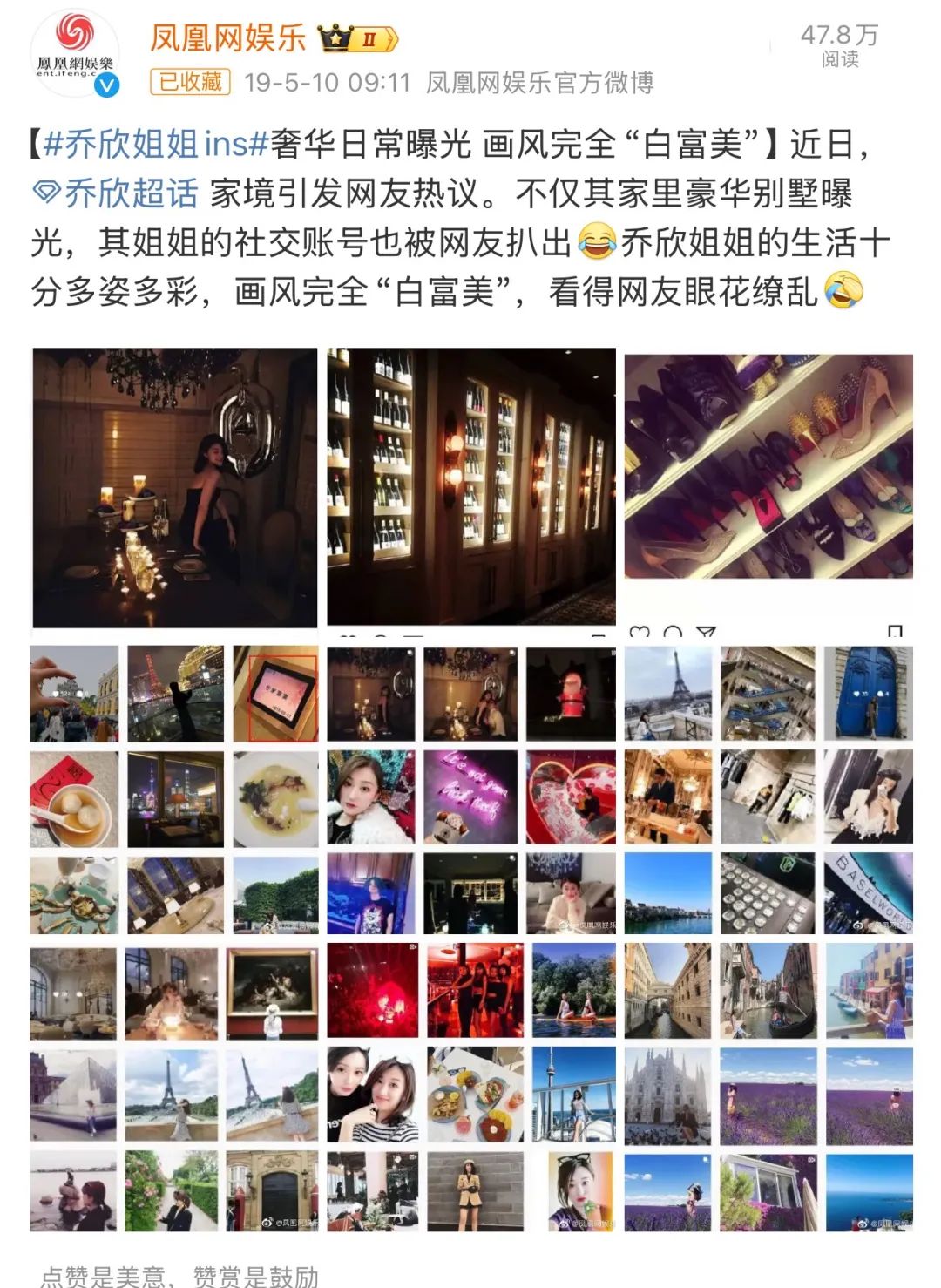 有媒体报道过,乔欣姐姐社交账号晒出的日常生活照,是“白富美”风格。