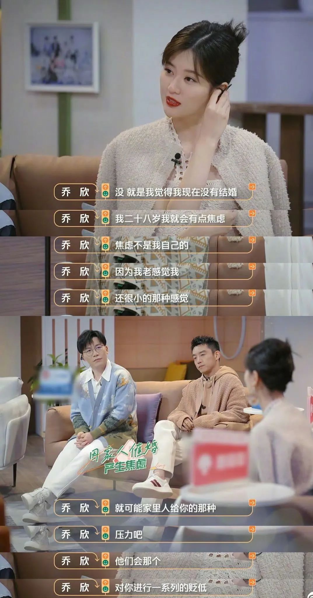 2022年5月,乔欣在节目上,提到家里人会给她结婚的压力,她自己觉得还挺小,不着急。