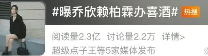 现在在微博搜“乔欣”,搜索栏上关联了赖柏霖的名字,以及退圈、结婚等相关词。