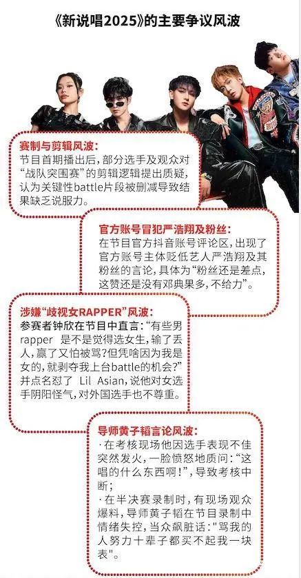 现象级火爆开局确实令《新说唱2025》足够吸睛,但接踵而来的争议却将这个节目推上风口浪尖。八年前,爱奇艺果敢尝鲜,开启说唱音乐从地下走向大众的里程碑;八年后,说唱综艺节目早已不是“独家专利”,或许爱奇艺真得好好想想,如何才能让说唱激发出更强的生命力与创造力。
