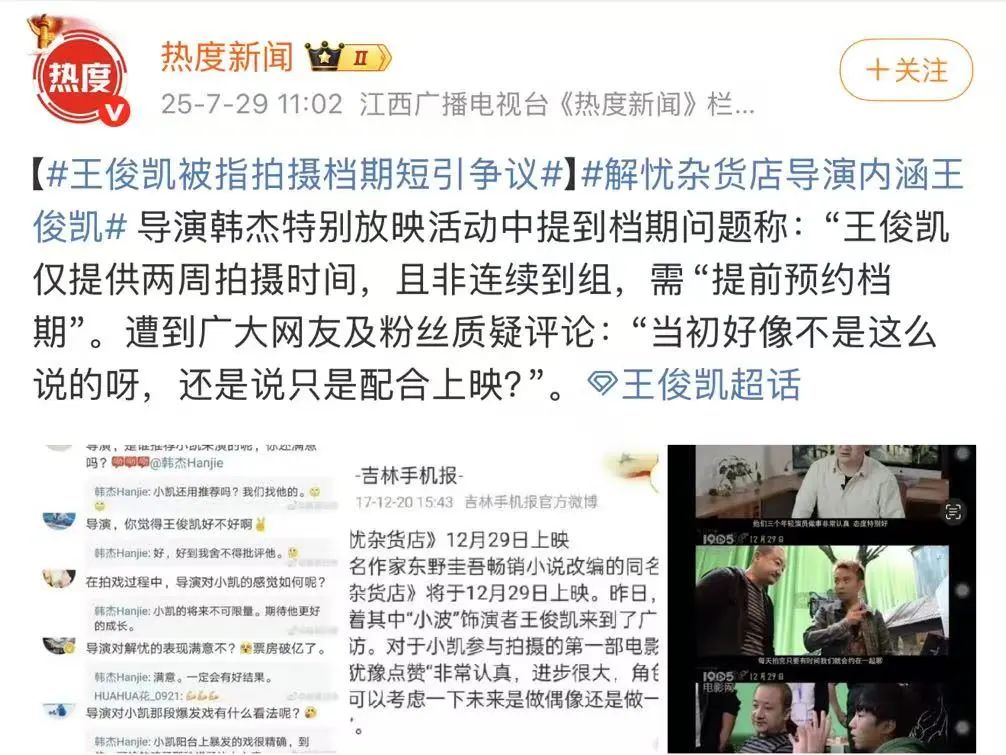 导演内涵王俊凯给的档期短,合作留下遗憾,网友质疑导演在打脸8年前的自己。