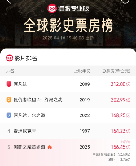 还有一个原因是中国电影的进步,今年年初《哪吒2》的口碑和票房奇迹惊艳了全世界。目前《哪吒2》已经进入了全球票房前五名。几乎同期上映《美国队长4》内地票房仅1.08亿,较前作缩水90%。