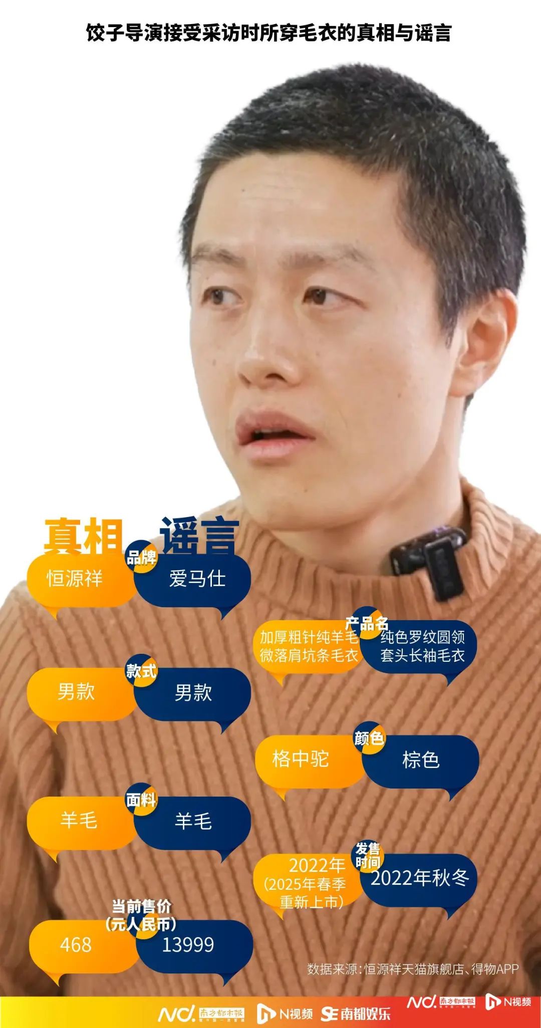 一件400多块钱的毛衣穿了三年多,并不妨碍饺子成为中国影史第11位百亿票房导演。