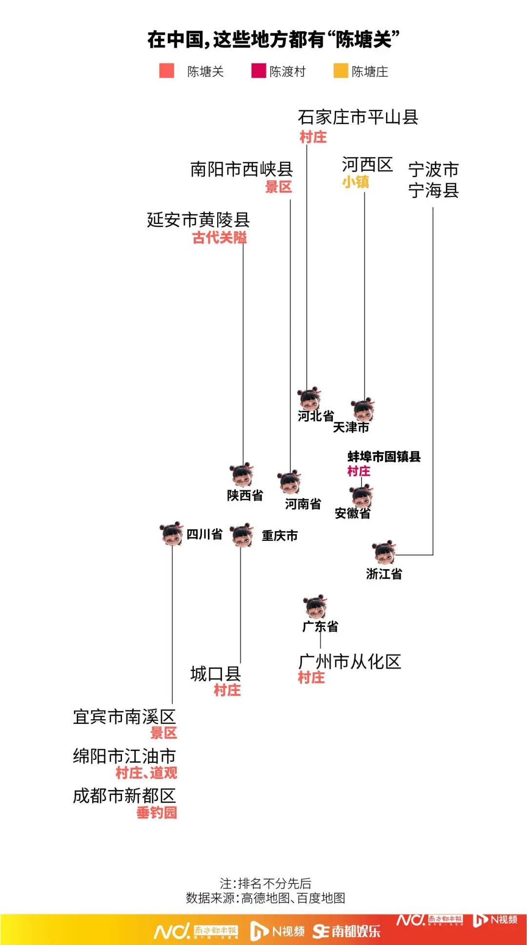 数据显示,当前国内一共有十多处陈塘关或与陈塘关相关的地方,分布在广东、四川、河北、重庆、河南、天津等省市。