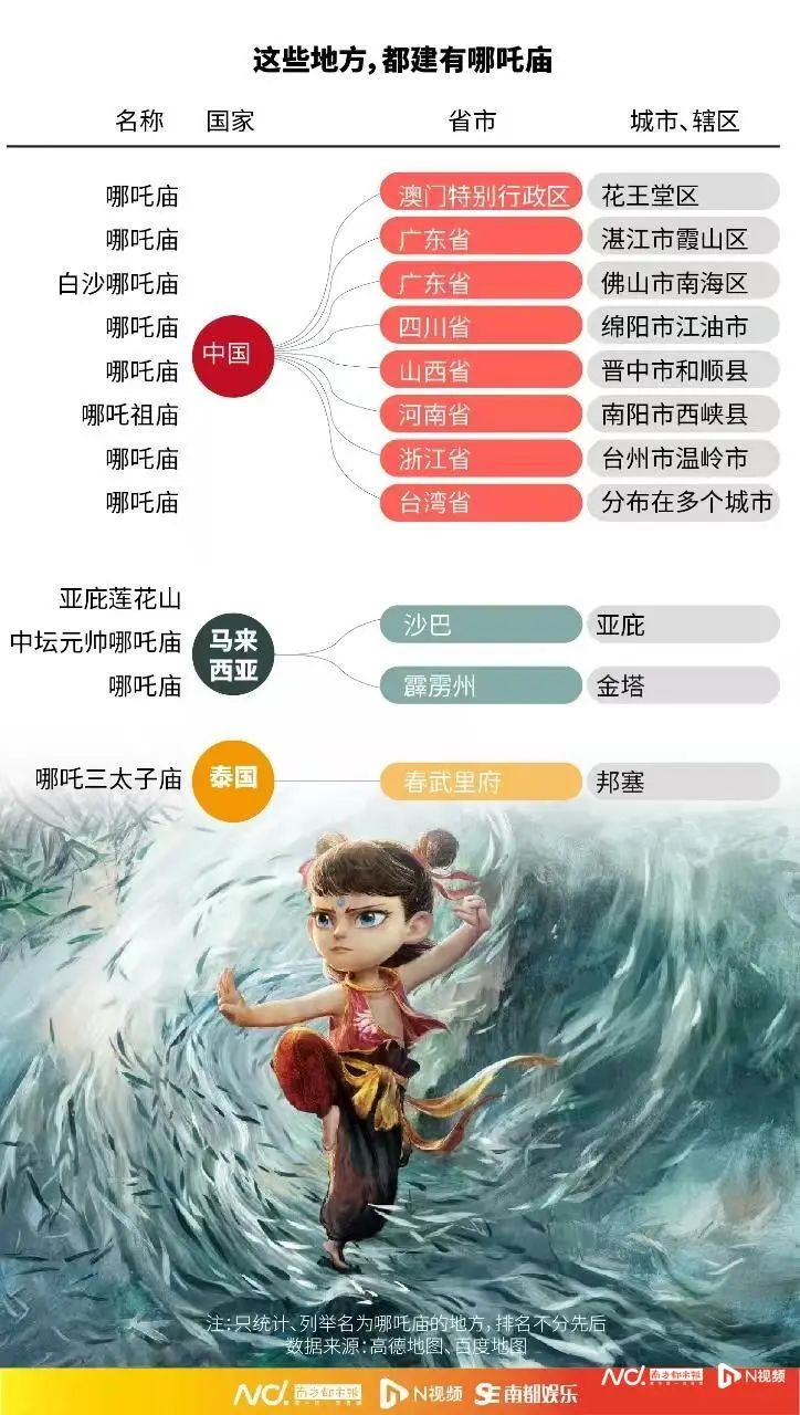 除了陈塘关,南都记者还从地图软件中搜寻到大量与哪吒相关的庙宇和道观。