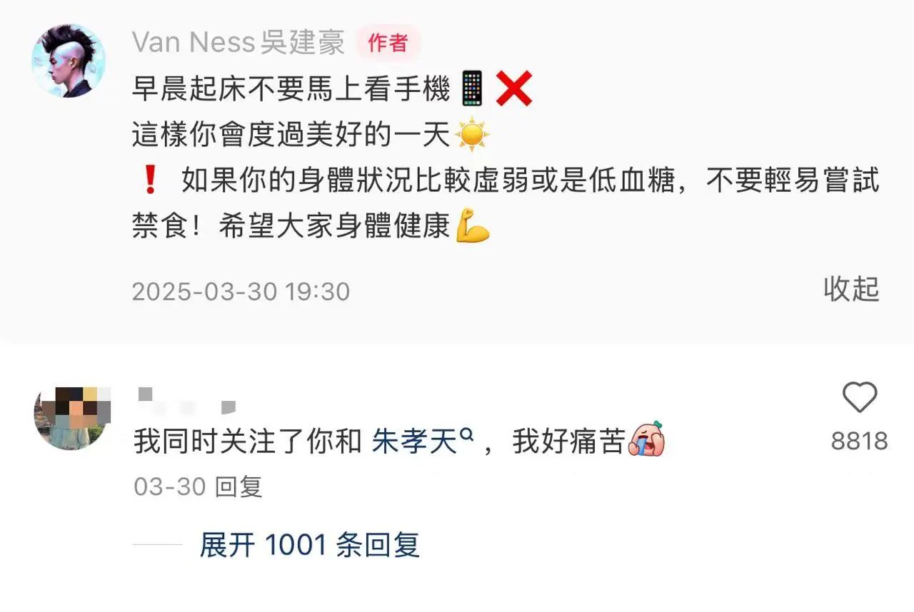 网友:我同时关注了你和朱孝天,我好痛苦!