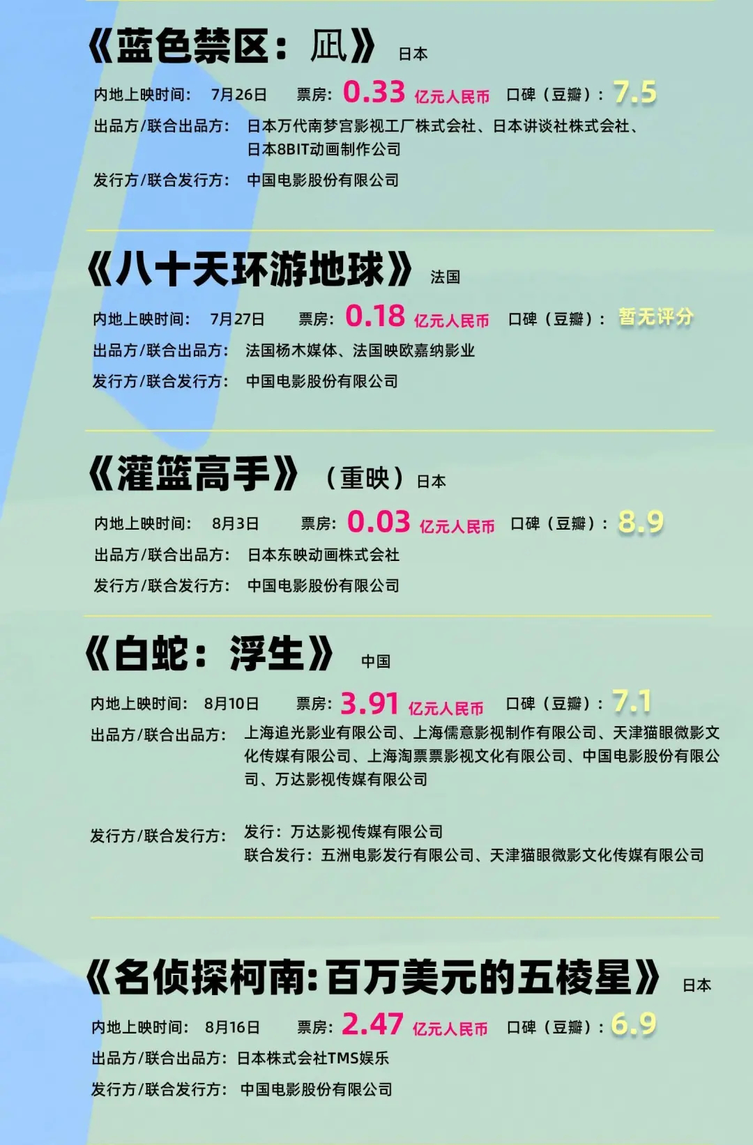 《灌篮高手》选择在8月3日,这个电影中湘北VS山王的比赛日节点重新与国内观众见面,设计了观影亦是观赛的仪式感。自上映以来,该片打破了多项纪录,并获得了第46届日本电影学院奖“最佳动画片”奖项。