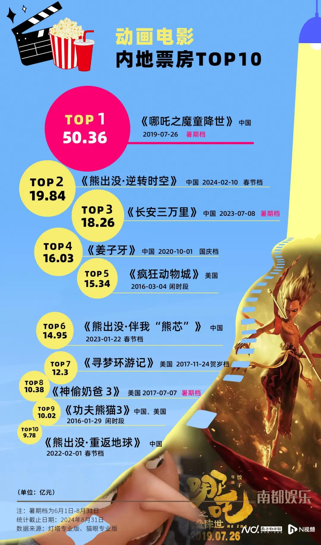 暑期档动画电影票房冠军又有多少挤进中国内地影史最卖座的动画排名榜?