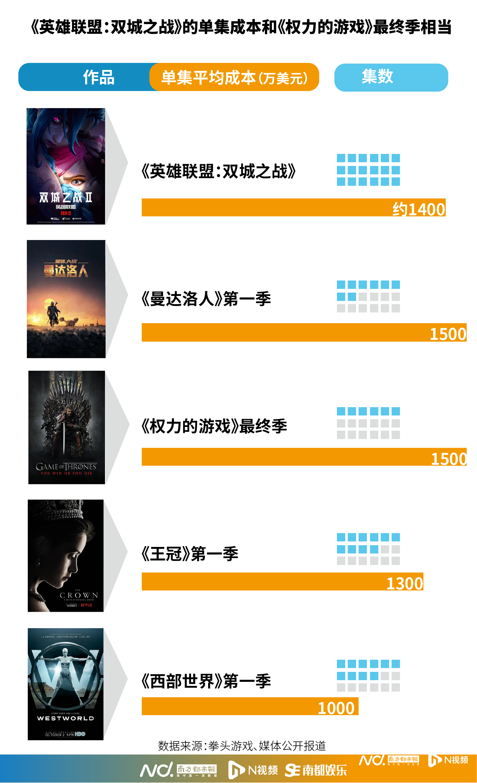 《双城之战》一共两季,18集,换算下来每集的平均成本就达到1400万美元,这是什么概念?