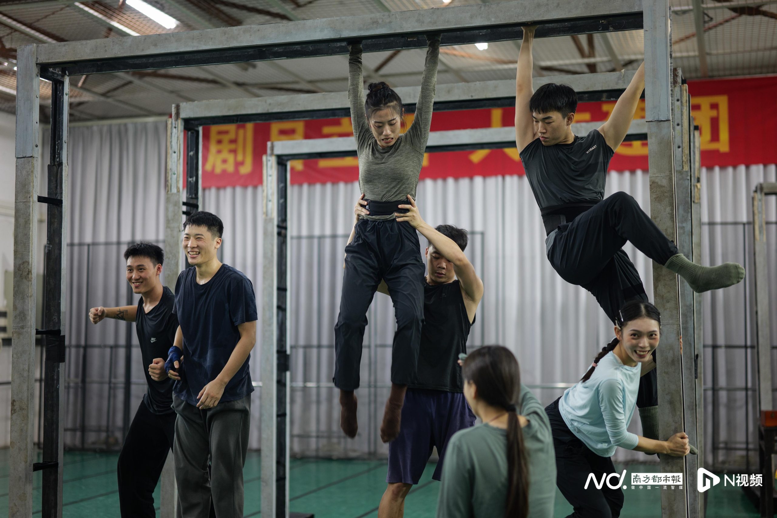 学习阶段结束,演员们便立刻投入到排练之中。几乎在演员们学跳英歌的同时,具体的动作设计就开始了:在英歌队传授动作的时候,边学边跳的除了演员们,还有执行编导吴淼和董文杰。根据剧本,不同角色、不同舞段的演员在两个大排练房里,试动作,练流程。同时,总编导钱鑫和王思思每天都在一旁根据演员们的表现调整细节。南都记者特地拍下了几位主演被钱鑫批评时候的样子,像极了作业没做好的小孩。