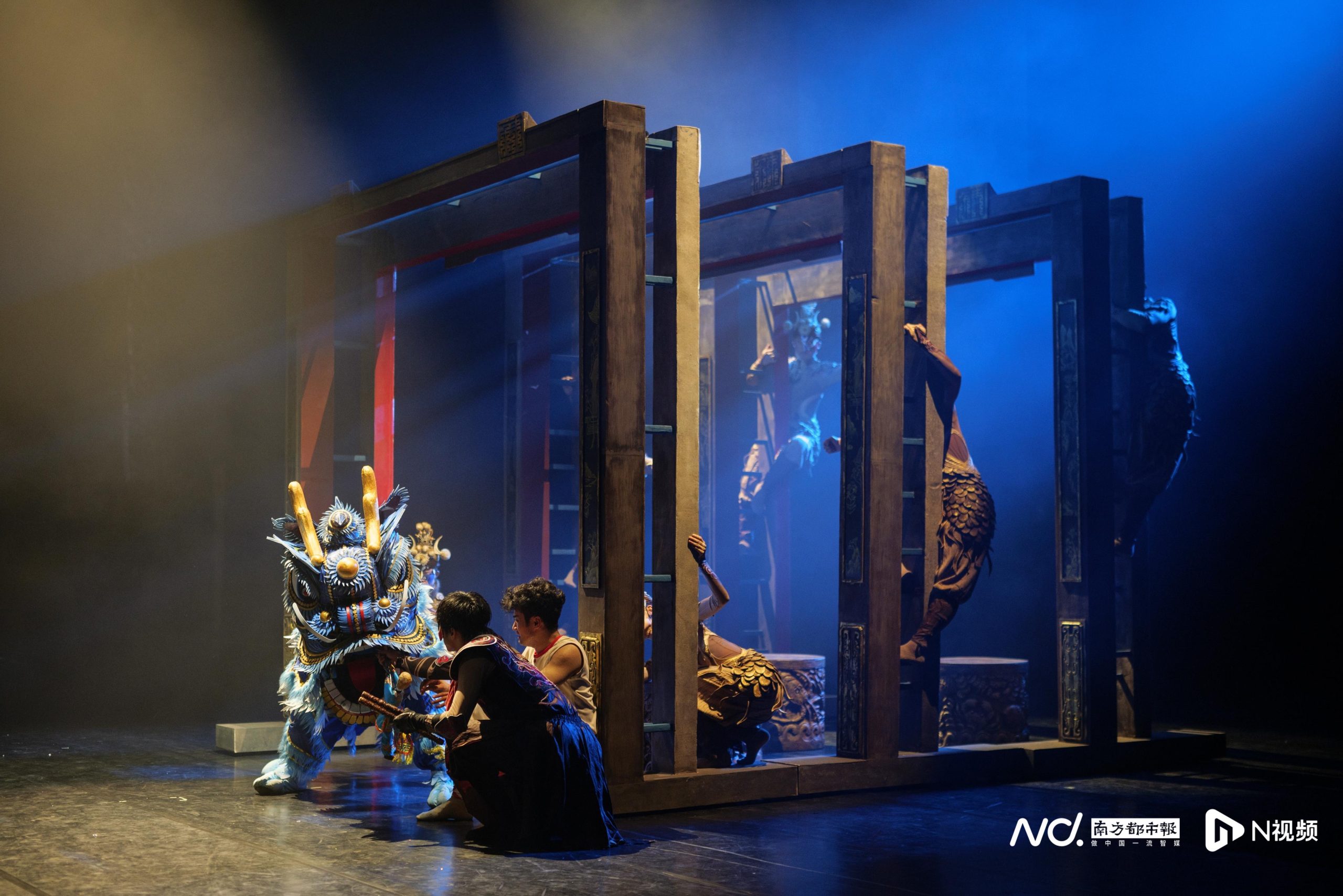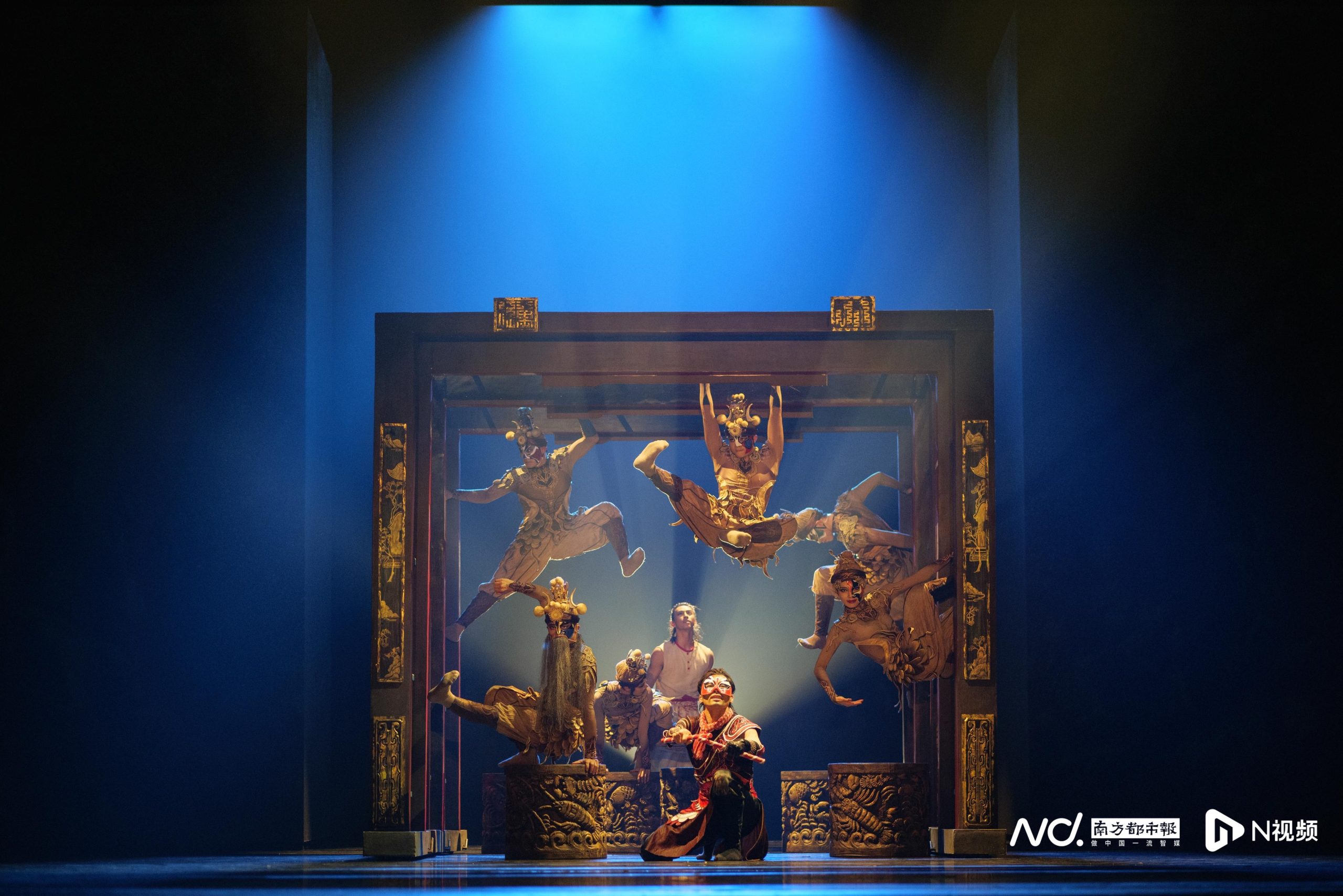 11月9日,《英歌》首次全妆演出,木雕门框上的神明“显现”。