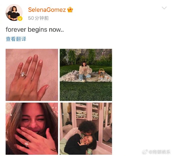 12日,Selena Gomez 晒出婚戒官宣与男友订婚:“forever begins now.. ”,据悉二人于去年12月官宣恋情,恭喜“傻脸娜”。