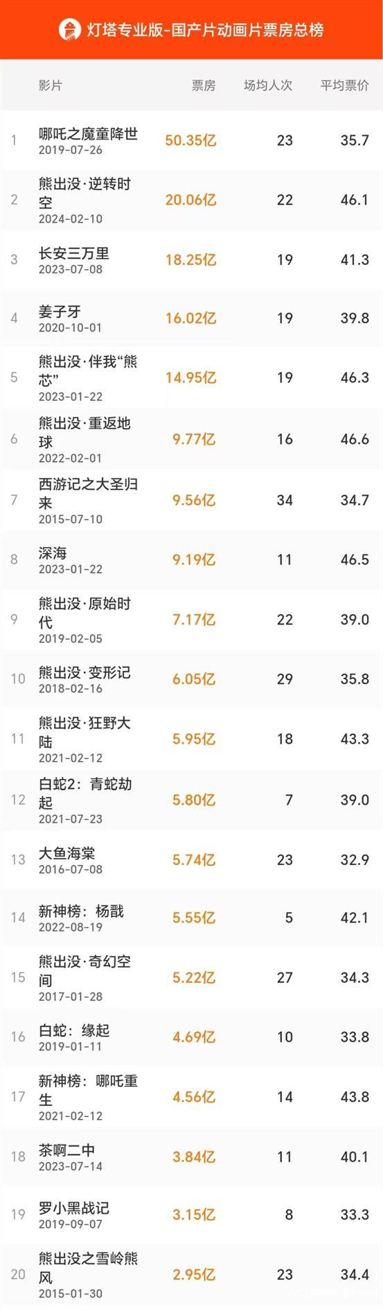 在国内做一部原创动画有多难?据灯塔专业版统计,国产动画电影票房榜前20,有8部“熊出没”大电影,4部封神IP,2部白蛇IP,1部西游IP,还有2部电影改编自高分番剧。前20榜单中,只有三部电影算得上原创,分别是《长安三万里》《深海》《大鱼海棠》。