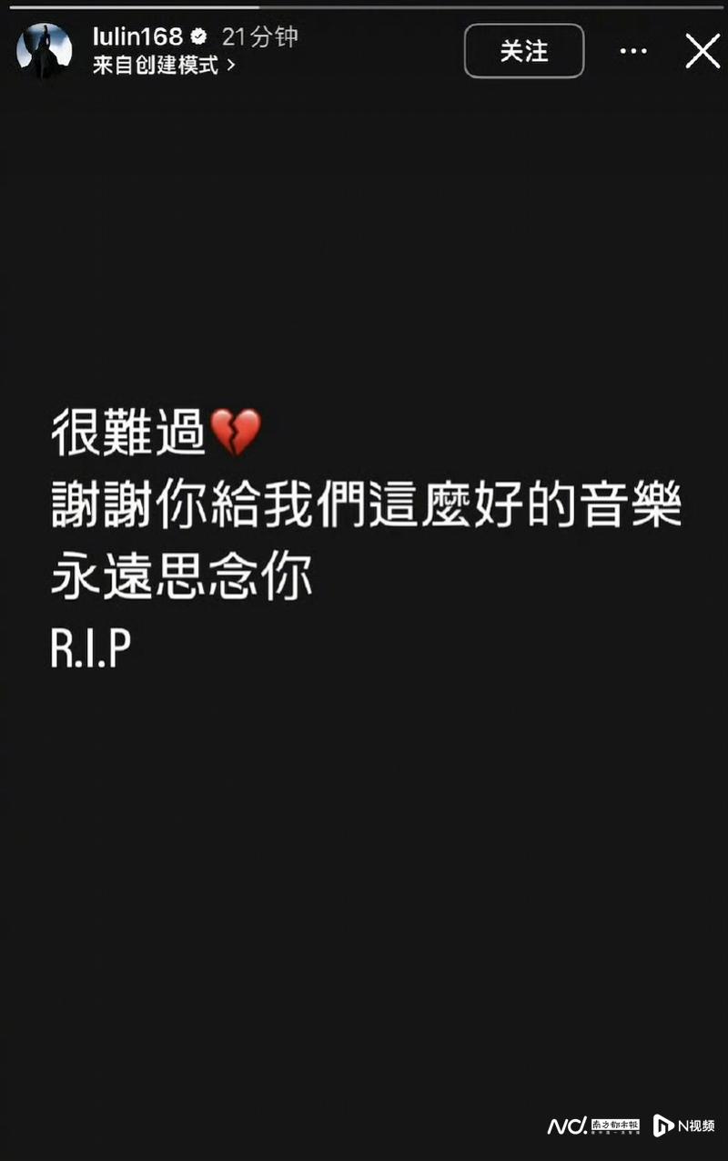 A-Lin在社交网站上发文表示,“谢谢你给我们这么好的音乐”。