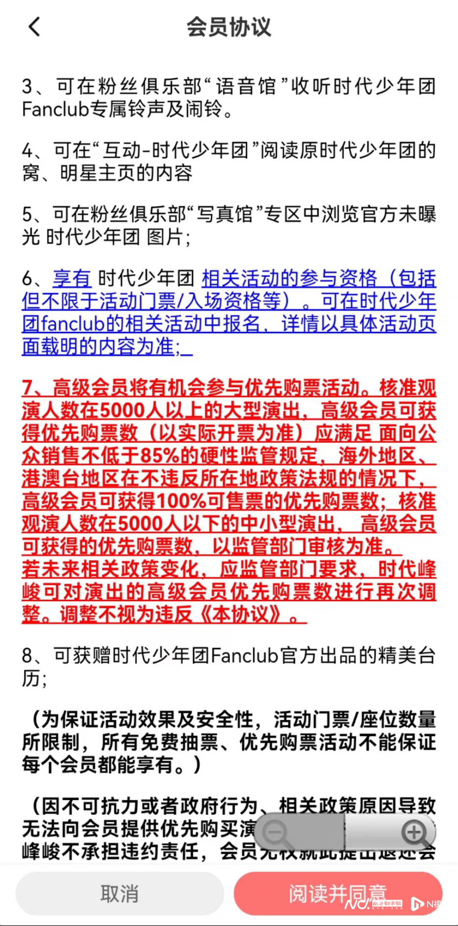 南都娱乐记者注意到,时代峰峻也在会员协议中对最新调整进行了修改。