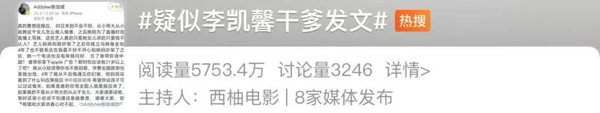 12日,热搜上出现#疑似李凯馨干爹发文#词条。