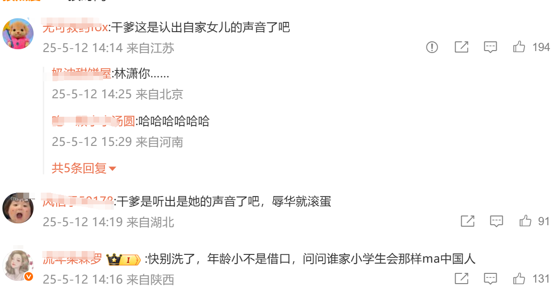 有网友猜测难道是干爹在录音里听出了自家女儿的声音?