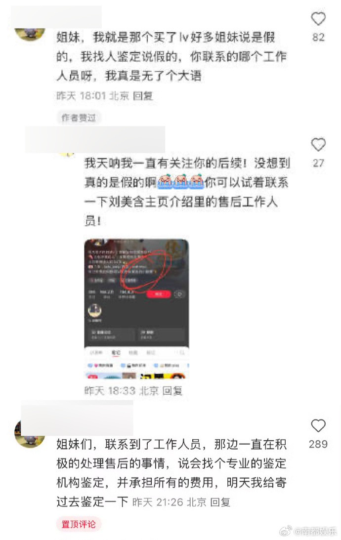 该网友称,后续联系上了刘美含方的工作人员,“他们一直在积极处理售后,说会找个专业的鉴定机构鉴定,并承担所有的费用。”