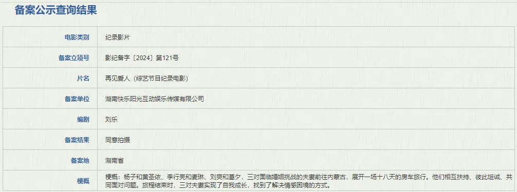 随着《再见爱人(综艺节目纪录电影)》的备案,这部综艺本身也像是在一场自行运转的超大型的“社会实验”。