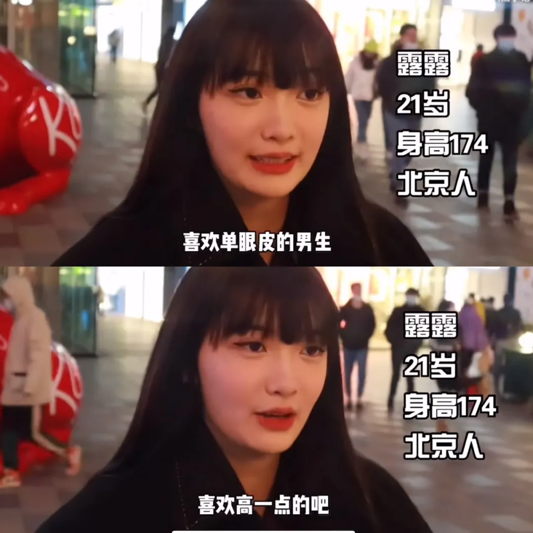 几年前,zzoexxll接受街头采访的视频也冲上热搜,被问到理想型,她说喜欢个子高+单眼皮的男生。