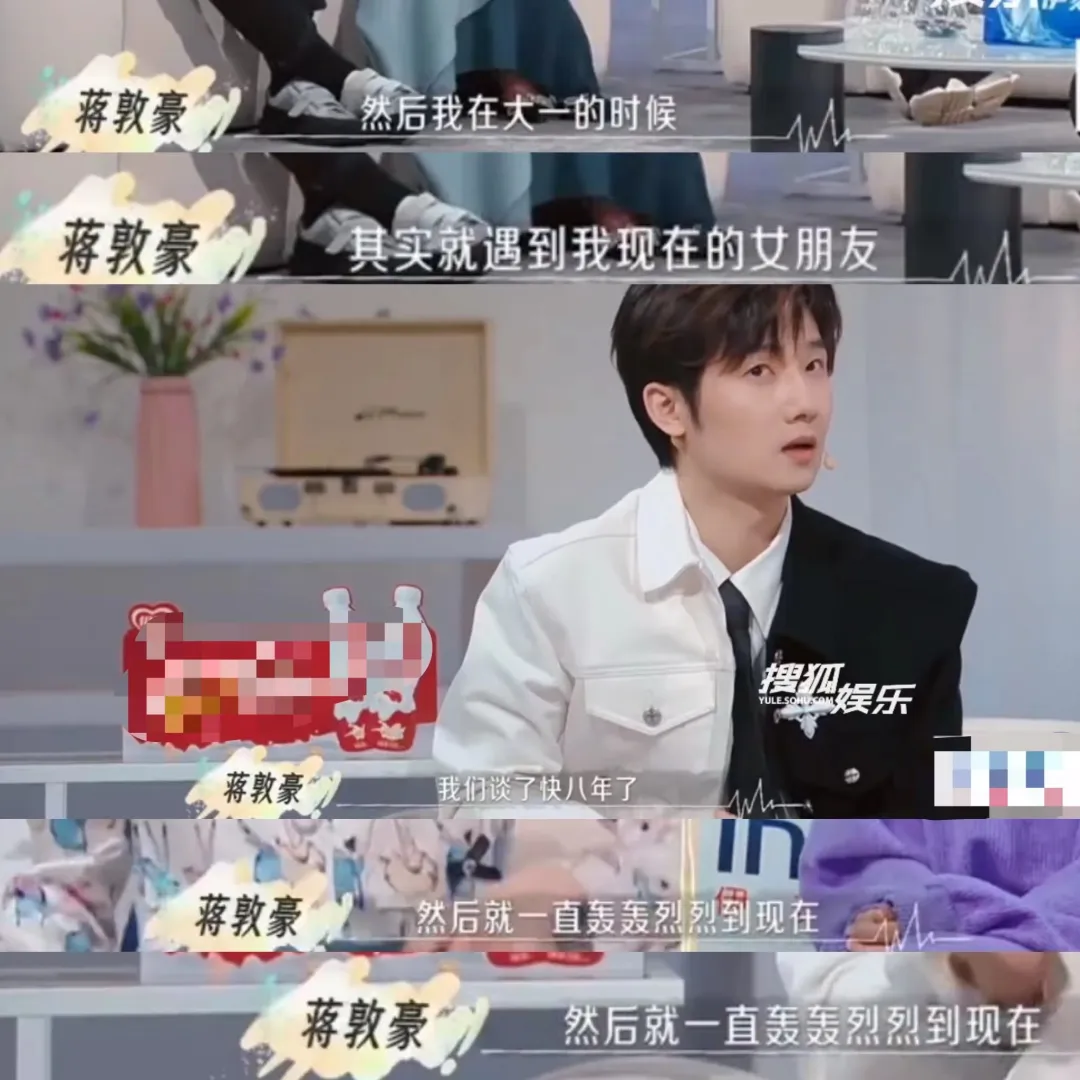 前年,蒋敦豪在某个恋爱综艺里担任演播室嘉宾,提到了这段感情,两人在大一时就在一起,当时已经谈了八年多,他表示一直轰轰烈烈到现在。