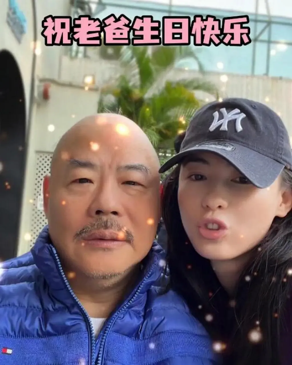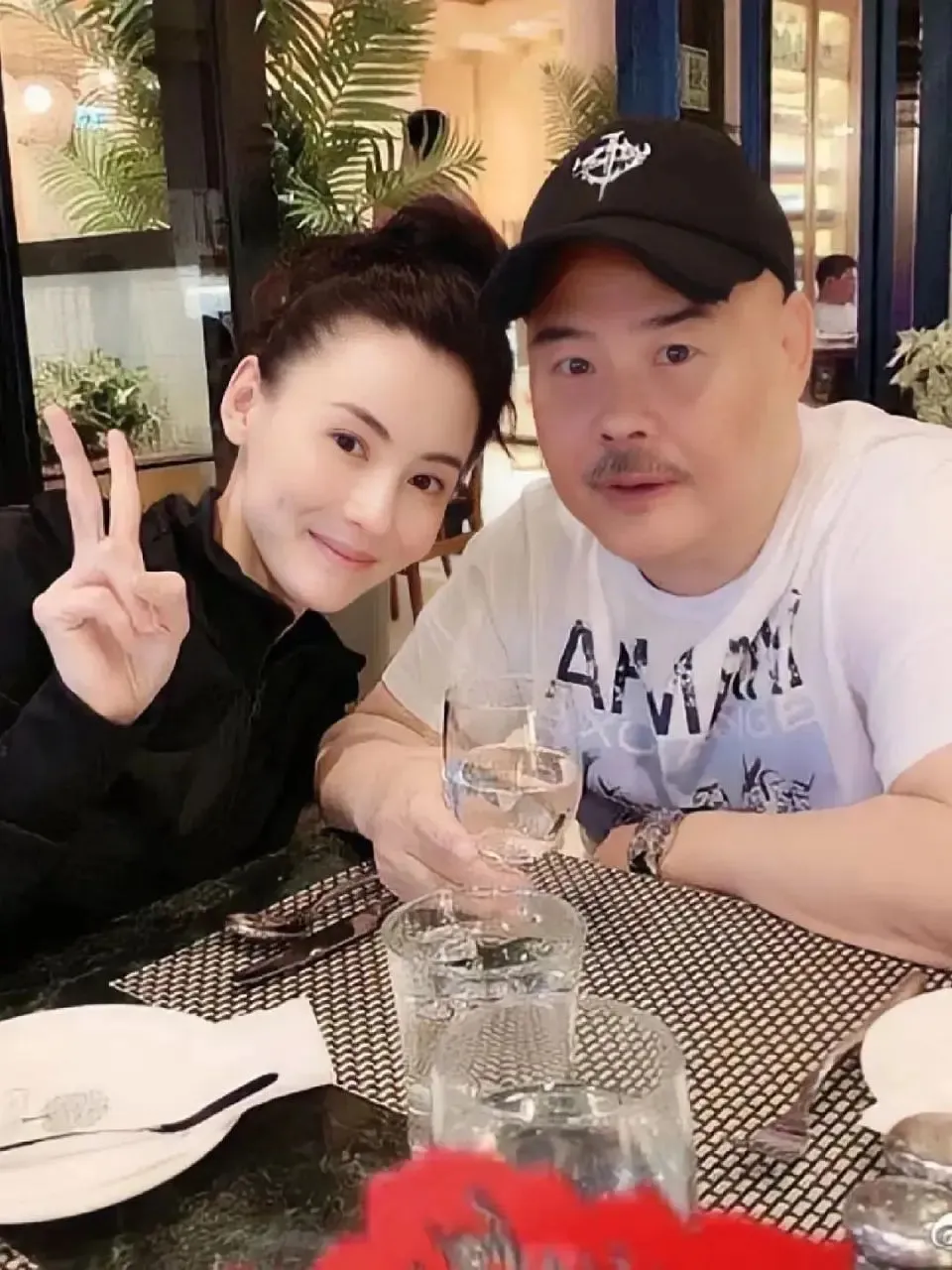 张柏芝和爸爸,乍一眼不像。