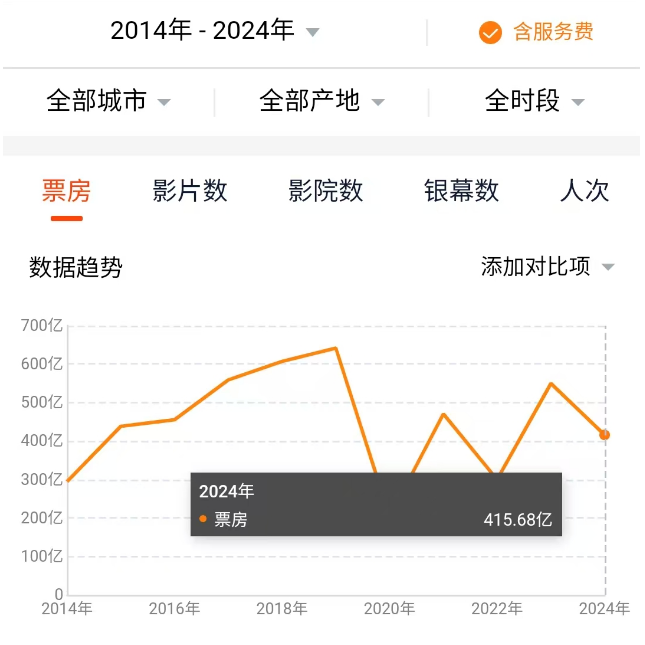目前国内的电影市场总票房为416亿人民币,相比于去年的550亿和2021年的470亿人民币,差距还是很明显。作为国民精神生活晴雨表的电影市场,今年是多云日较多。