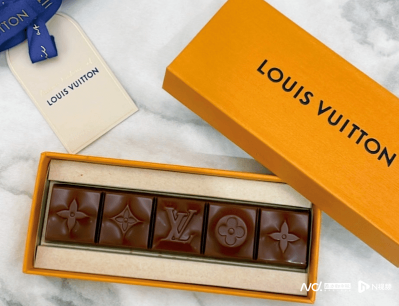 LV巧克力店内售价最低的牛奶巧克力棒240元/盒(5小块),被网友戏称为“穷鬼套餐”“LV最便宜的单品”,对普通打工人来说,买一只LV手袋可能需要花费几个月的工资,但一盒LV巧克力的价格则在可以承受的消费区间里。据官方图片显示,LV巧克力配备了品牌经典的橙黄色包装盒和蓝色丝带,巧克力上印着LV的logo,精致有面子,适合送礼。LV巧克力在国内一经推出便供不应求,预约制、排长队都无法阻挡消费者的热情,甚至催生了黄牛市场,每盒巧克力至少要加价150元才能拿下。