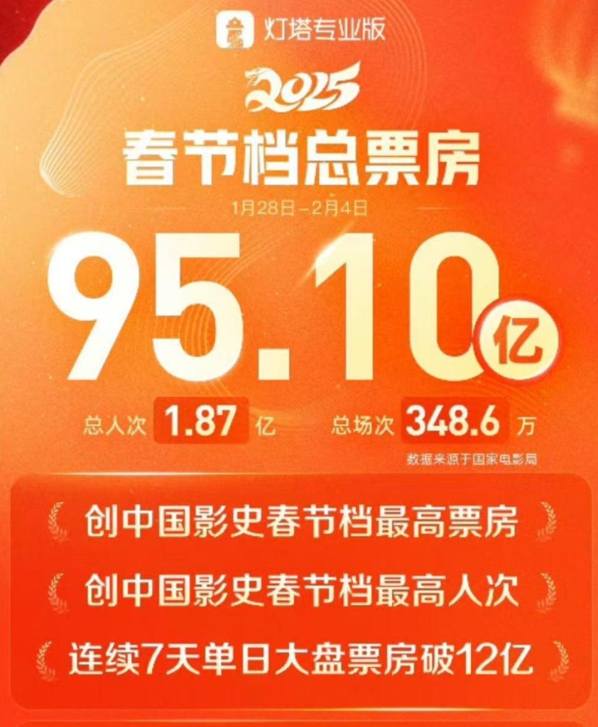2025春节档破多项纪录,总票房95.1亿元成最强春节档