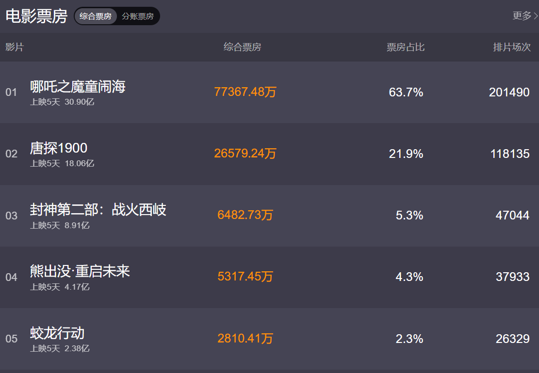 春节档六部电影,票房胜负已经分晓。