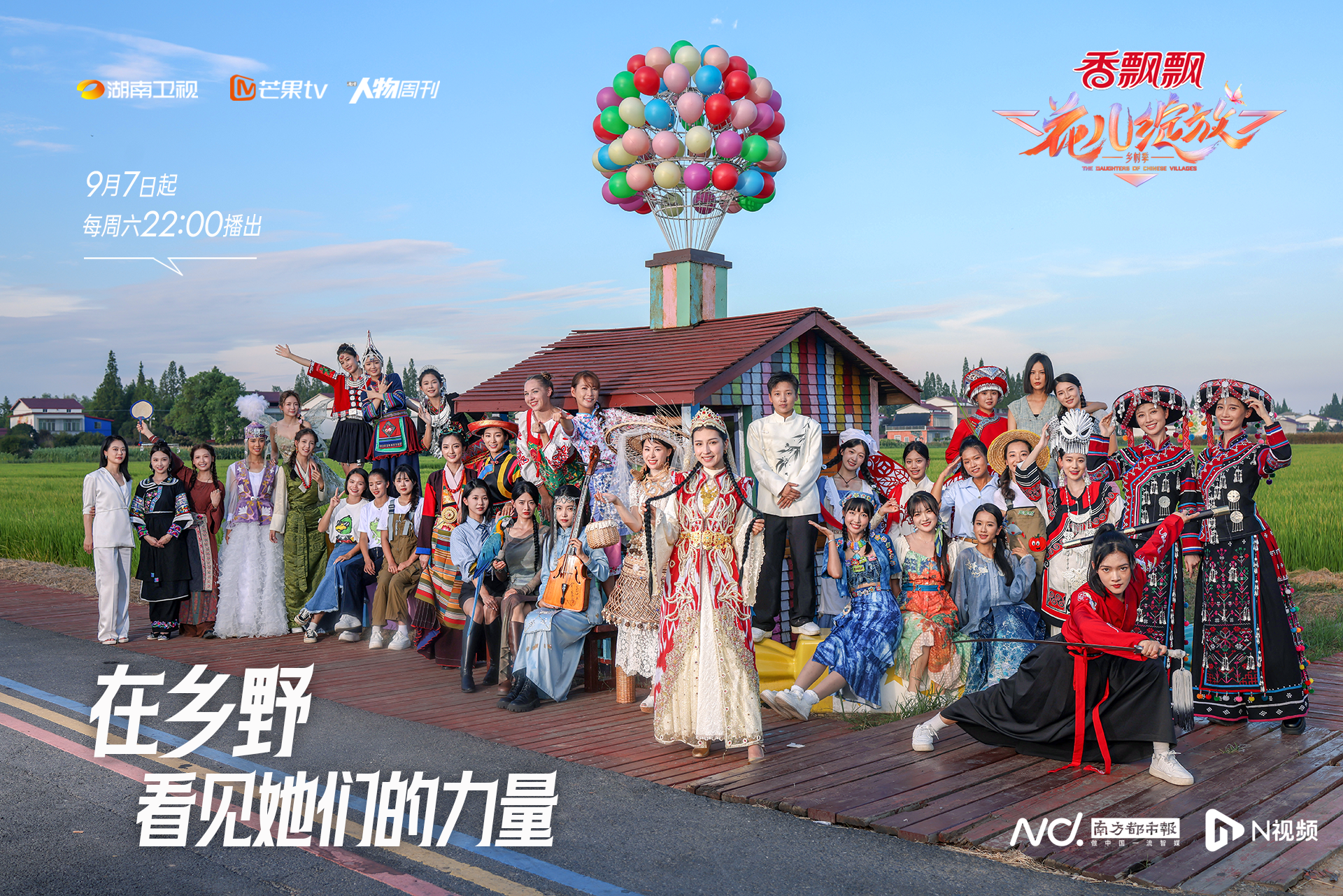 今年6月起,从大理、南京、长沙全国三站招募而来的36位花儿,最终在益阳罗文村完成集结。《花儿绽放》通过“滋味之美·村飨”“潮流之美·村秀”“活力之美村赛”“创意之美·村集”“多彩之美·村晚”五大“村潮”企划,聚焦农村、农人、农事,多维度立体展现新时代特色乡村和乡村女性风貌。在层层考核和比拼中,花儿们不断进阶升级,展示自我,争夺年度全能大花,为最美乡村代言,获得更多家乡推荐资源,助推乡村振兴。