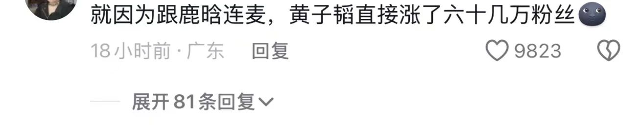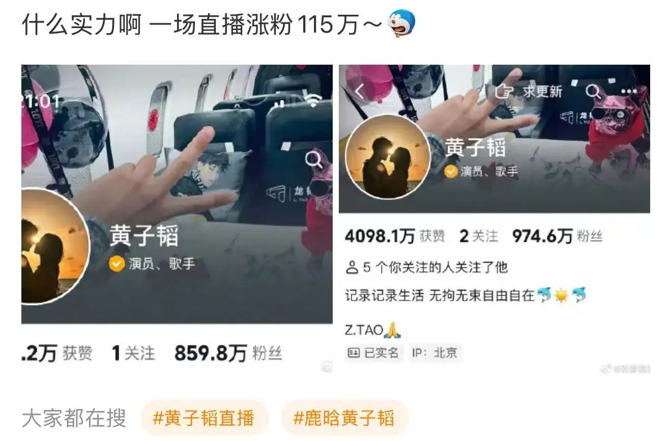 有一些网友发现,这场直播下来,黄子韬涨粉百万。