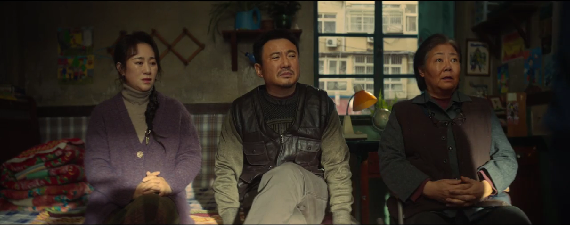 里院顶楼小屋的布置充满了怀旧滤镜,马继业在这个空间里宛如三好学生模板,一言一行都极其失真,正是这种夸张的表现风格瓦解了马成钢视角下的温馨,也刺痛着我们关于优秀教育的想象。在这个象征着他与亲人关系的空间,只是一个父亲对童年自己的弥补,家长把孩子当作自己的延续,常常悉心照顾,却疏于欣赏其主体性。象征着亲情的关系虚假至此,马继业成长的第一步是继续扮演三好学生模板,在日记本里写下豪言壮志,等待着被父母检阅。