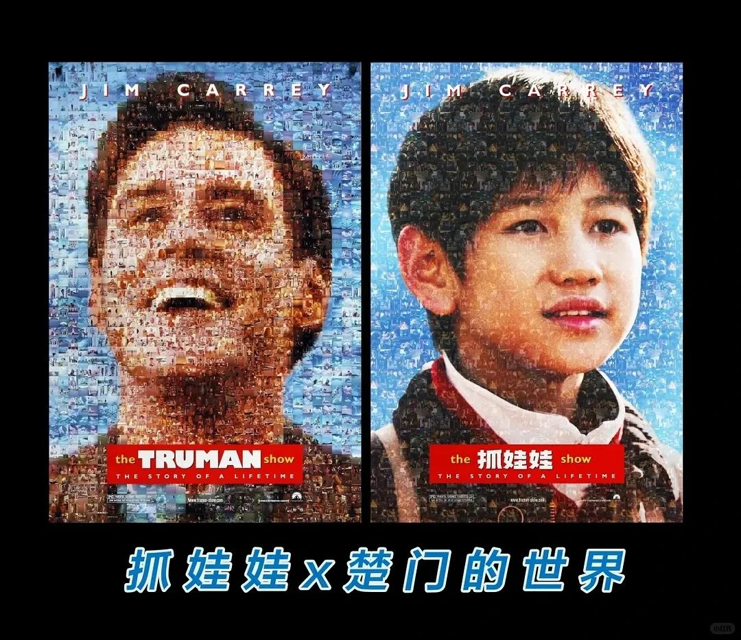 许多观众把《抓娃娃》与《楚门的世界》作对比,后者讲述了主人公楚门意识到自己生活在一个被精心设计、全球直播的真人秀节目,于是勇敢克服内心的恐惧去追寻自由的故事。听起来似乎就是马继业视角下的《抓娃娃》,影片中也有多处设定致敬了经典前作,但两部电影的命题并不相同,《抓娃娃》更聚焦于成长。