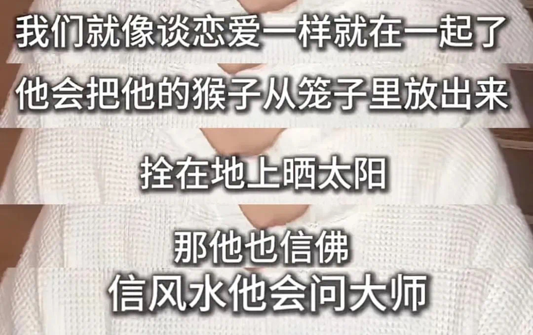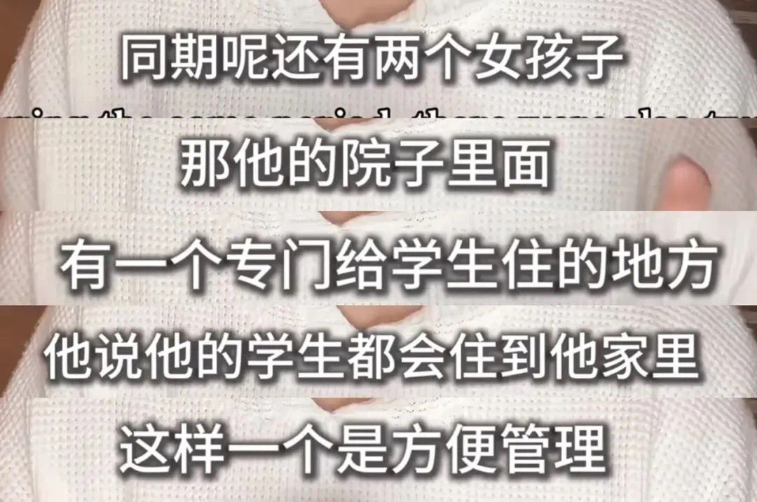 她谈到对方信佛,信风水,会让学生体验生活,扫院子、捡狗屎、菜地里摘菜,家里养只猴子。