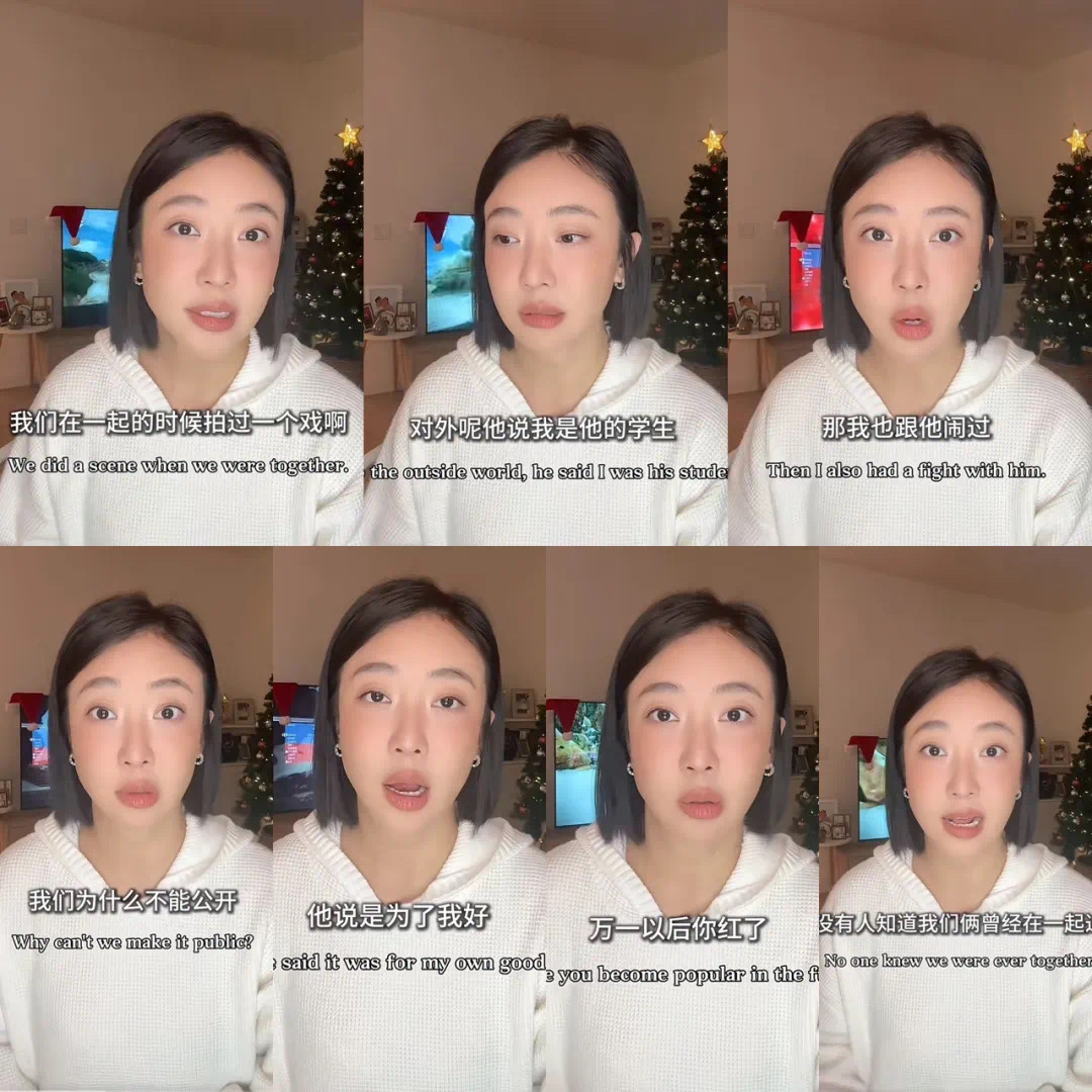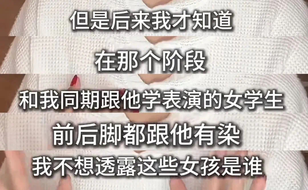 她透露更多两人在一起的细节,称10多年前刚进光线,经纪人给她找了个老师,三周学费15万。她住在老师的院子,第一天晚上老师就来敲门,但她装睡;第二天这个老师安排了谈恋爱的戏份,她被连哄带骗发生关系。