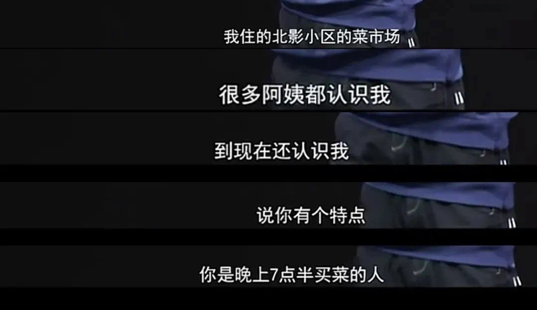 他说过自己住在北影小区的菜市场,阿姨都认识他,因为他经常七点半要收摊的时候去买菜。