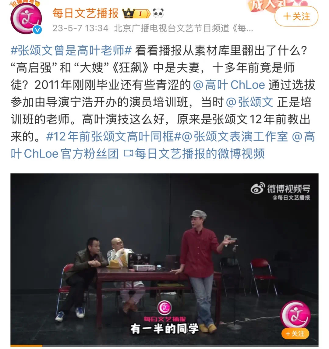 十几年前,导演宁浩开办过演员培训班,张颂文是培训老师,当时刚大学毕业的高叶也参加过。