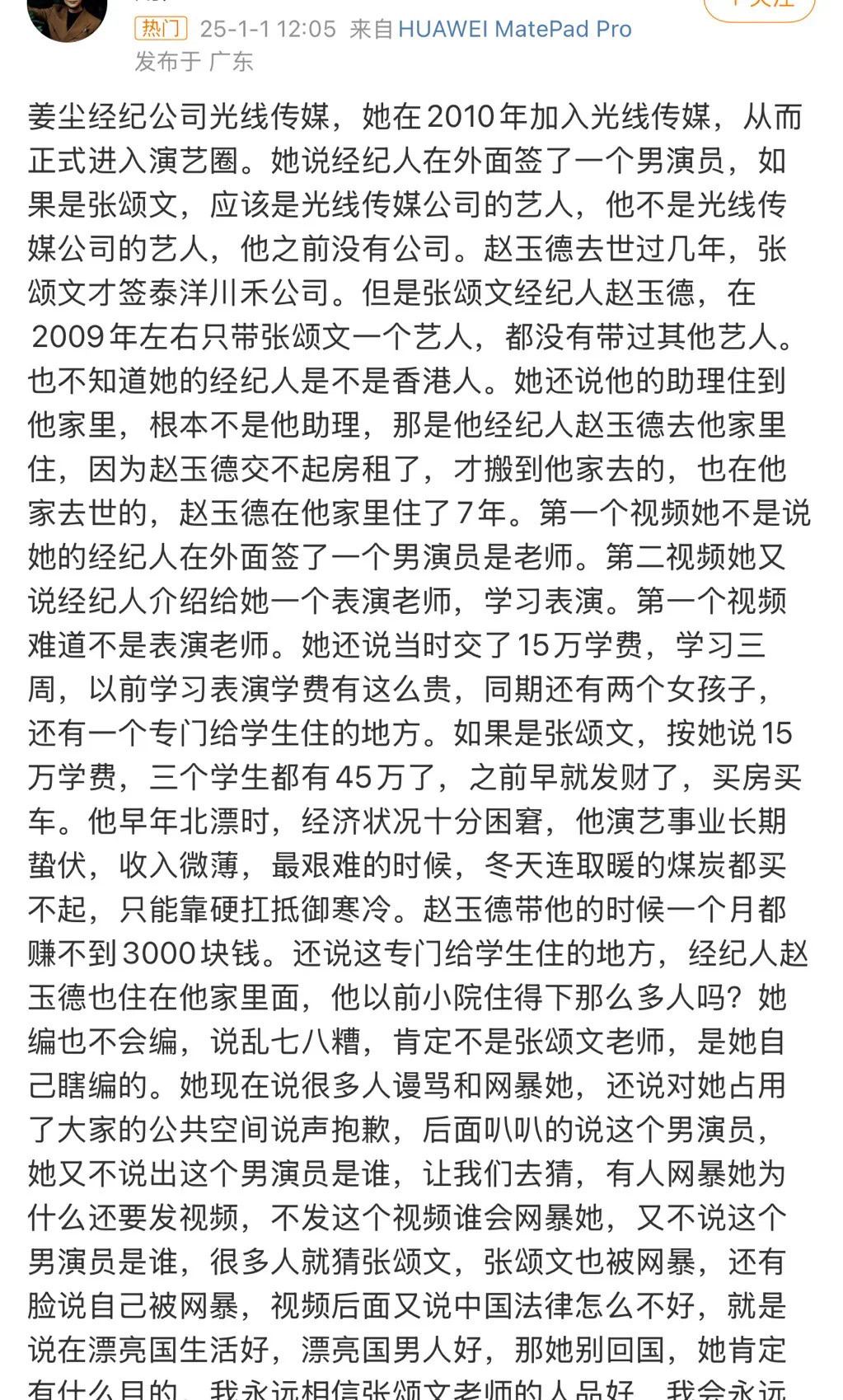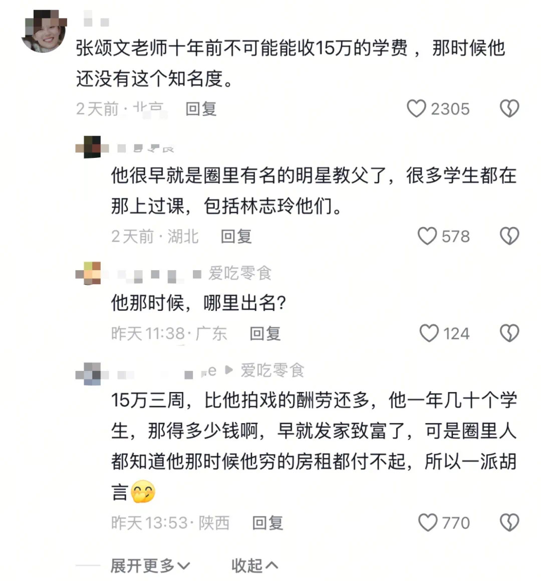 有网友对姜尘发言提出质疑,她说经纪人在外面签了一个男演员,2009年左右张颂文经纪人赵玉德只带了张颂文一人。网友质疑如果学费十五万一人那么贵,如果她说的导师是张颂文,张颂文应该早发财了,事实上张颂文有段时间过得很困窘。