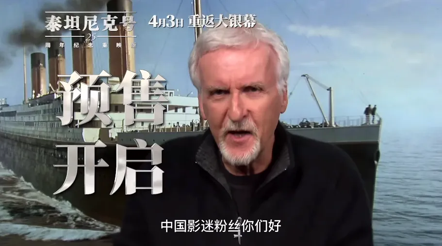 2023年,《泰坦尼克号》上映25周年,为纪念这个日子,影片用了格式为3D、4K和HDR的高清重制版。詹姆斯·卡梅隆还拍了一小段短视频,跟中国影迷打声招呼